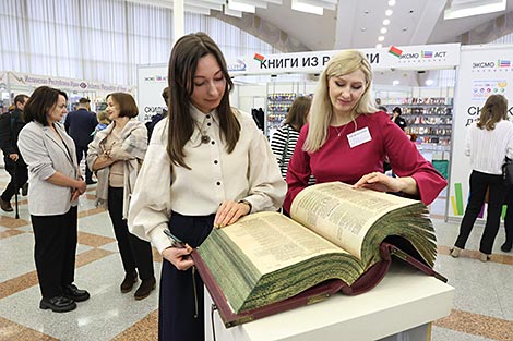 Особое внимание посетителей привлек стенд Национальной библиотеки Беларуси. Здесь были представлены 30 книг из факсимильных проектов, в том числе первые памятники книжной письменности восточных славян – Туровское, Слуцкое, Полоцкое Евангелия, а также Брестская Библия. Гости могли увидеть уникальные издания, подаренные НББ иностранными делегациями, в том числе иллюстрированный словарь старого Пекина, факсимиле одного из красивейших Коранов в мире, факсимильное издание ЕвангелияФедора Достоевского,а также подарок Израиля – нано-Библия, представляющая собой миниатюрную кремниевую пластину с текстом 27 книг Библии на греческом языке.