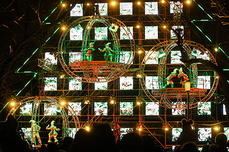 Шоу проводилось на специально смонтированной 23-метровой конструкции – "ёлке". Она была оснащена множеством световых и звуковых приборов, светодиодных экранов, на которых транслировался специально созданный видеоконтент, создававший эффект огромной новогодней ели. В новогодних шарах-игрушках на ёлке были показаны хореографические и музыкальные номера.