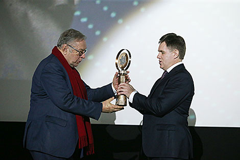 Заместитель премьер-министра Игорь Петришенко вручает приз Президента режиссеру Кшиштофу Занусси
