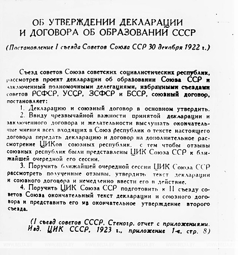Постановление I съезда Советов Союза ССР "Об утверждении декларации и договора об образовании СССР" 30 декабря 1922 года