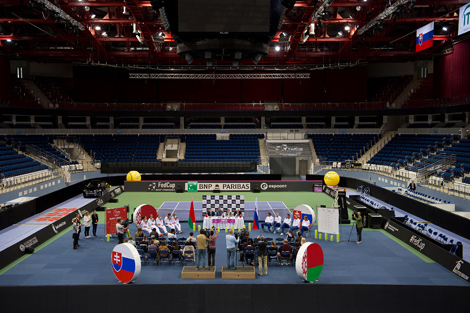 20 апреля, Минск /Корр. БЕЛТА/. На корте минской "Чижовка-Арены" сегодня состоялась жеребьевка матча плей-офф Мировой группы Кубка Федерации Беларусь - Словакия. Эта игра станет сотой для сборной Беларуси за время выступлений в Кубке Федерации, передает корреспондент БЕЛТА.