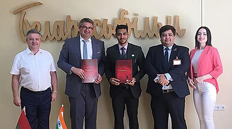Генеральный директор Национальной киностудии "Беларусьфильм" Владимир Карачевский и учредитель ООО "Синтилейтинг Глобал" Джаген Моханты подписали сегодня соглашение о сотрудничестве на пять лет в сфере кинематографии. Они договорились об использовании индийской стороной кинотехнологических услуг и студийных возможностей "Беларусьфильма", а также об оказании друг другу организационной и маркетинговой поддержки.