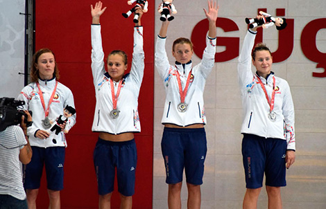 В комбинированной эстафете 4х100 м она вместе с Марией Рудько, Екатериной Еремцовой и Анастасией Филипчик стала обладательницей серебра, уступив российской эстафетной команде.
