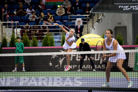 22 апреля, Минск /Корр. БЕЛТА/. Белорусские теннисистки победили Словакию в парной игре со счетом 6:3, 6:4 в плей-офф Мировой группы Кубка Федерации, сообщает корреспондент БЕЛТА.
