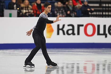 Восемнадцатилетний атлет вышел на лед "Минск-Арены" в первой группе и показал результат в 56,38 балла. Каскад прыжков в начале своей программы под композицию Dream by Imagine Dragons он выполнил уверенно, но некоторые ошибки не позволили рассчитывать на более высокую сумму баллов.