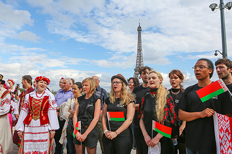 Белорусский гимн исполнили у Эйфелевой башни в Париже в преддверии Дня Независимости