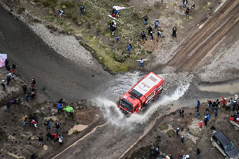 Белорусские гонщики участвовали в ралли-рейде в седьмой раз. Владельцем команды выступает Минский автозавод, техническим партнером - телеком-оператор velcom. Автомарафон в этом году проходил по территории трех стран - Перу, Боливии и Аргентины. Протяженность только скоростных участков составила 3,5 тыс. км.