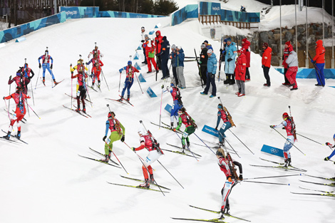 Биатлонисты разыграют еще два комплекта олимпийских наград - 22 февраля состоится женская эстафетная гонка 4х6,5 км, 23 февраля пройдет мужская эстафета 4х7,5 км.