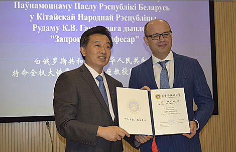 Чрезвычайный и Полномочный Посол Беларуси в КНР Кирилл Рудый на церемонии открытия подчеркнул, что народный поэт Якуб Колас - символ патриотизма и мужества белорусского народа. Он всегда глубоко чувствовал огромную личную ответственность за судьбу страны, ее независимость и значение в мире. Ректор Чэнь Фачунь вручил Кириллу Рудому диплом приглашенного профессора Тяньцзиньского университета иностранных языков, после чего состоялась лекция белорусского дипломата для студентов этого вуза.
