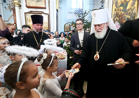 Митрополит Павел поздравил всех присутствующих с наступившим праздником всепрощения, светлых чувств и любви, совершил молитву за детей Беларуси и благословил участников акции. В знак благодарности дети преподнесли Владыке праздничные творческие поздравления и сувениры, изготовленные своими руками. "Мероприятие "Рождественская елка - наши дети" по истине доброе. Все дети, которые сегодня сюда пришли, оставят это светлое событие в своей памяти, в сердце и в сознании. Смотришь на них - и радостно становится. Они живут доброй жизнью. Хочется пожелать, чтобы эта детская чистота сохранилась у них как можно дольше", - сказал митрополит Павел.