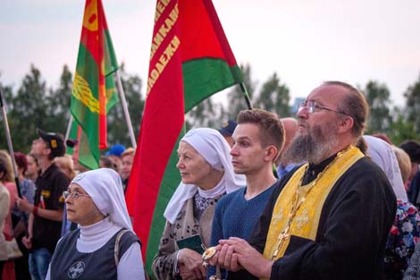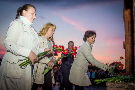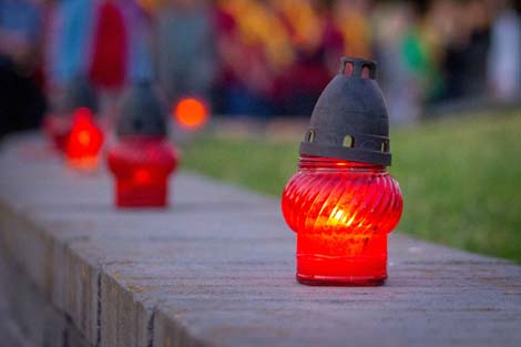 Традиционное мероприятие началось ровно в четыре часа утра с возложения цветов к каплице. В нем приняли участие представители исполнительной власти, общественных объединений, трудовых коллективов, ветераны, актив БРСМ, учащиеся и студенты. Они почтили минутой молчания память погибших на полях сражений солдат, замученных в неволе узников фашистских концлагерей, стариков, женщин и детей, навсегда оставшихся в военном лихолетье немецкой оккупации.