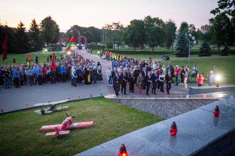 22 июня, Могилев /Сергей Кулягин - БЕЛТА/. Более 500 человек приняли участие в митинге-реквиеме на мемориальном комплексе "Буйничское поле", посвященном Дню всенародной памяти жертв Великой Отечественной войны, сообщили корреспонденту БЕЛТА в главном управлении идеологической работы и по делам молодежи облисполкома.