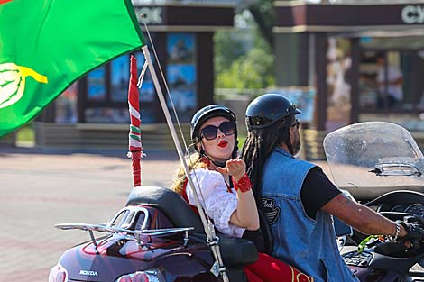 В город участники марафона въехали в сопровождении байкеров и автомобилистов и направились в сторону Брестской крепости. На площадке перед главным входом в мемориальный комплекс разместились сцена, интерактивные площадки и фотозона. Желающие могут посетить мобильную экспозицию "Освобождение Беларуси", передать информацию о своих родственниках - участниках войны для создания альбома "Беларусь помнит. Родные лица Победы".