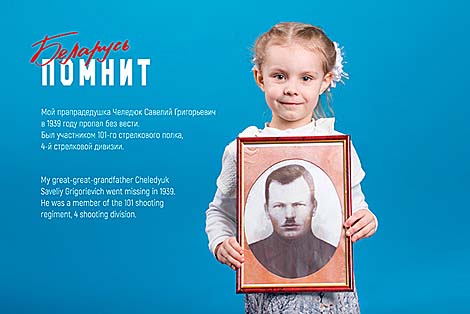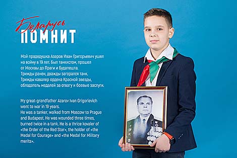 "Союз молодежи приглашает всех желающих без ограничений по возрасту и социальному статусу принять участие в интернет-челлендже фотографий "#Беларусьпомнит". Для этого необходимо разместить в социальных сетях Instagram, "ВКонтакте", "Одноклассники", Facebook и других свое фото со снимками из семейных архивов с родственниками-фронтовиками. Мы очень надеемся, что такие посты будут дополнены краткими рассказами о том, кто изображен на снимке, кем этот герой был во время Великой Отечественной войны, каких наград был удостоен. А хештег #Беларусьпомнит поможет передать эстафету, своеобразный вызов своим друзьям", - рассказала Наталья Столпинская.