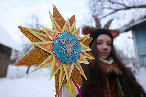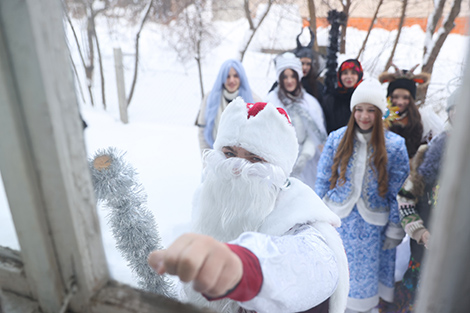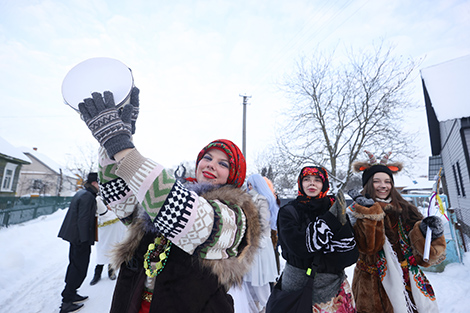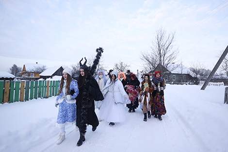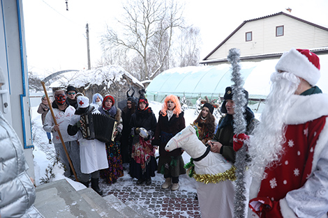 Корреспондентам БЕЛТА посчастливилось пересечься с большой компанией друзей и родственников. "Нас девять человек. Такой праздник веселый, каждый год "бегаем", никогда не пропускаем. Каждый раз у каждого из нас новые наряды. Сегодня, конечно, очень холодно. Но чем больше снега, тем лучше - больше ощущается праздник. Буквально в каждом доме нас встречают с прекрасными угощениями. Люди делают комплименты нашим костюмам", - поделилась Ольга Прико.