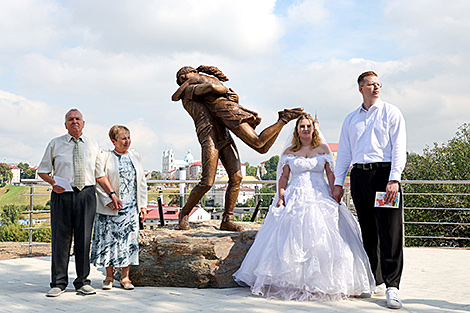 Молодожены, чей стаж пока очень скромен, Максим и Татьяна Шанчук поженились 29 августа. "Мы оба из Гродно, познакомились в соцсетях. Только-только поженились и рады оказаться здесь на таком символическом событии, приятно, что пригласили. Однозначно этот сквер станет нашим любимым местом для прогулок", - поделились молодые люди.