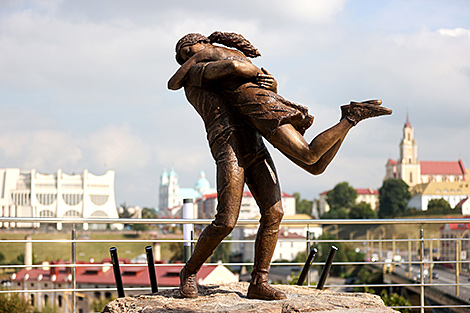 Излюбленное место горожан и гостей города над Неманом преобразилось колоссально. Сквер, с которого открывается живописный вид на Гродно, стал уютнее, красивее и комфортнее. Здесь установили скамейки, качели и обустроили детскую площадку. Отныне изюминка сквера - бронзовая статуя, которая получила название "Встреча".