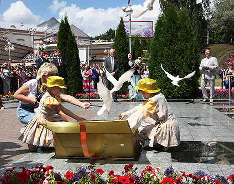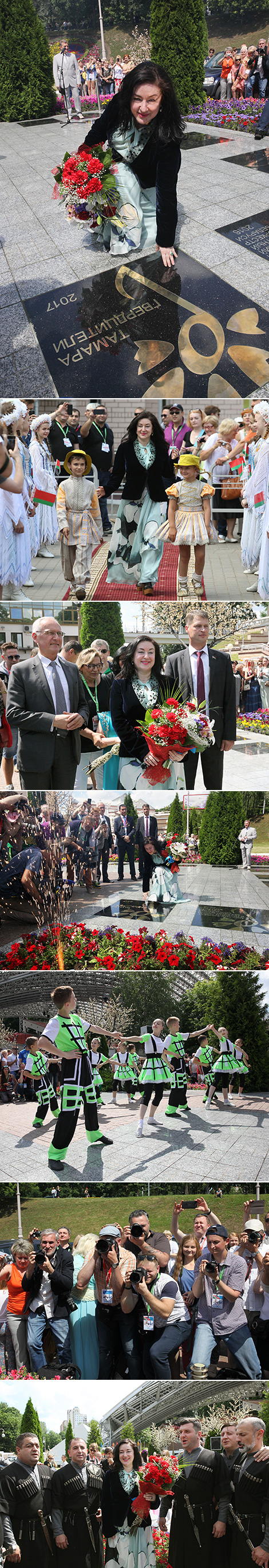 Плита нового лауреата специальной награды Президента Беларуси "Через искусство - к миру и взаимопониманию" была открыта сразу после торжественного поднятия флага фестиваля. В этом году "звездную" прописку получила народная артистка Грузии и России, истинный символ дружбы народов в искусстве - Тамара Гвердцители.