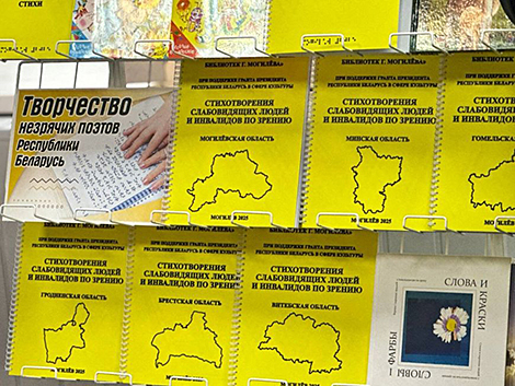 Кроме того, отдельно издано 6 сборников стихотворений собственного сочинения, авторами которых стали слабовидящие и незрячие люди из разных регионов Беларуси. От каждой области выбрали по 5 авторов. Опубликованы произведения в формате своеобразной "книги-перевертыша": одна часть напечатана шрифтом Брайля, а другая - укрупненным шрифтом.
