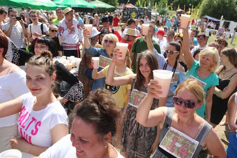 Необычные состязания для всех желающих были включены в программу третьего дня XII Республиканского фестиваля национальных культур. Праздник впервые вышел за пределы Гродно: одна из фестивальных локаций разместилась у шлюза Домбровка.