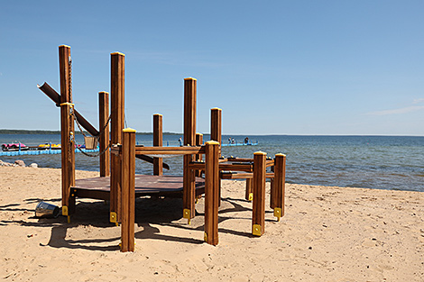 Дополнительно благоустроена территория, оборудована воркаут-площадка. На пляже обновили песчаное покрытие, установили душевые, множество шезлонгов, появились качели, беседки и сезонное кафе. Работает пункт проката.