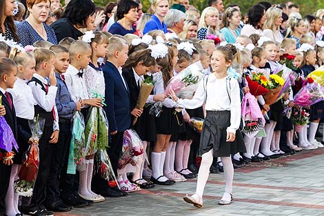 1 сентября, Иваново /Корр. БЕЛТА/. Торжественной линейкой, посвященной Дню знаний, стартовали сегодня в средней школе №4 Иваново мероприятия XXV Дня белорусской письменности, передает корреспондент БЕЛТА.