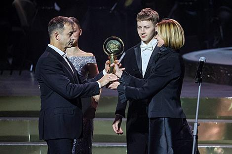"Спасибо большое, служу белорусско-российскому искусству", - сказал Дмитрий Певцов, поблагодарив за почетную награду.