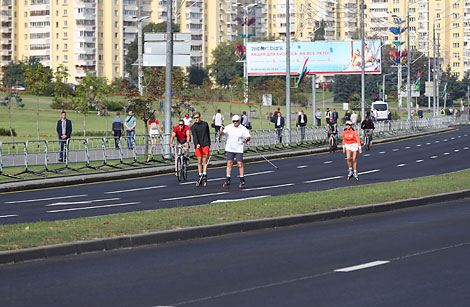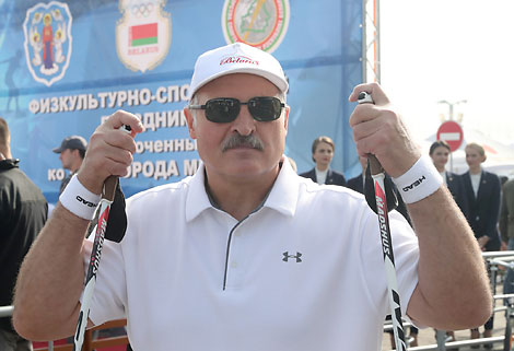8 сентября, Минск /Корр. БЕЛТА/. Президент Беларуси Александр Лукашенко на лыжероллерах прибыл на физкультурно-спортивный праздник, приуроченный к Дню города Минска. Мероприятие проходит на проспекте Победителей в районе Дворца спорта, передает корреспондент БЕЛТА.