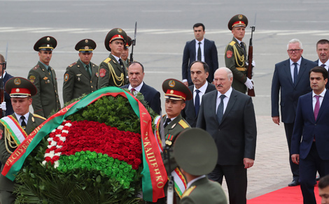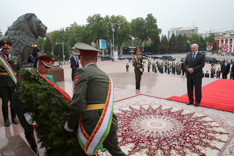15 мая, Душанбе /Владимир Матвеев - БЕЛТА/. Президент Беларуси Александр Лукашенко сегодня в Душанбе возложил венок к памятнику Исмаилу Сомони, передает корреспондент БЕЛТА.