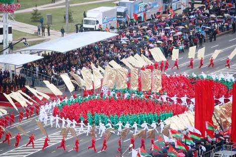 3 июля, Минск /Корр. БЕЛТА/. Массовое театрализованное представление "Мой родны кут" в честь Дня Независимости проходит в белорусской столице у стелы "Минск - город-герой", передает корреспондент БЕЛТА.