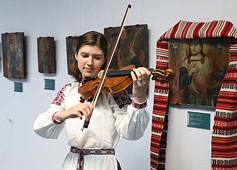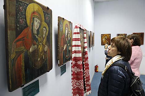 "Эта выставка очень важна для сохранения культурного наследия Беларуси, понимания развития белорусских традиций иконописи", - подчеркнул председатель епархиальной комиссии по сотрудничеству в сфере культуры и охраны памятников Витебской епархии БПЦ, протоиерей Николай Прусаков. Народные иконы - особый слой этнической культуры, который представляет собой синтез православной иконописи, западноевропейской сакральной живописи и приемов народного декоративного искусства. Белорусские народные иконы написаны в рамках общих христианских канонов, но, опираясь на них, передавали эмоции, чувства и симпатии самого иконописца. Их обобщает написание на доске масляными красками, чаще без использования грунта. Доски для икон обрабатывались не очень тщательно, часто имели дефекты, отметили в музее.