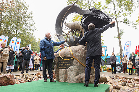 4 октября, Белоозерск /Корр. БЕЛТА/. Город Белоозерск 4 октября принимает фестиваль-ярмарку тружеников села Брестской области "Дажынкі-2025". Для жителей и гостей праздника приготовили множество сюрпризов. Один из них - открытие памятного знака белорусской пресноводной креветке. В церемонии приняли участие заместитель премьер-министра Юрий Шулейко и председатель Брестского облисполкома Петр Пархомчик, передает корреспондент БЕЛТА.