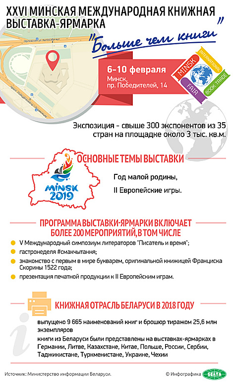 XXVI Минская международная книжная выставка-ярмарка проходит под слоганом "Больше чем книги" с 6 по 10 февраля. Ожидается, что выставку посетят около 60 тыс. человек. Организаторами выступают Министерство информации, Минский горисполком, Союз писателей Беларуси, соорганизаторы - министерства иностранных дел, образования, культуры, ОАО "Белкнига", ПК ООО "Макбел".