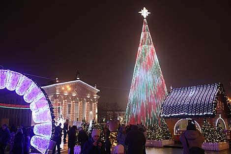 11 декабря, Гомель /Корр. БЕЛТА/. Пиксельная новогодняя елка зажглась сегодня на центральной площади в Гомеле под громкие возгласы детей и взрослых, передает корреспондент БЕЛТА.