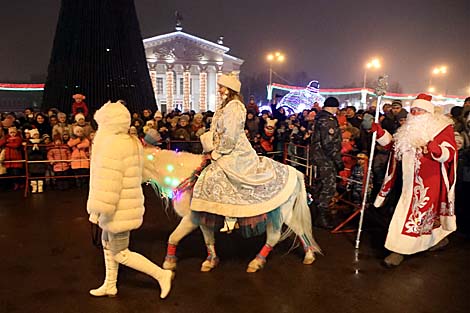 На церемонию зажжения огней главной красавицы областного центра собрались маленькие и взрослые жители и гости города над Сожем. Организаторы праздника подготовили веселые развлечения, хороводы. На сцене развернулось представление, герои которого - богатырь и его конь Юлий, Василиса Прекрасная, а также символы уходящего года увлекли зрителей в настоящую сказку. Праздничное настроение создавали также выступления артистов областного центра. И, конечно же, вместе с Дедом Морозом и Снегурочкой участники праздника сделали все возможное, чтобы новогодняя красавица засияла.