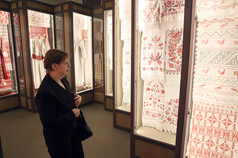 "Неглюбский строй достаточно уникален. Он живой и "надзённы", начиная с рубахи. Богатая рубаха начинается от горла и ниспадает до стоп. К примеру, когда рукав "паўсямiсты", то есть красный узор на всем рукаве, значит, девушка уже замужем. С годами красного на рукавах будет становиться все меньше. Ближе к старости или когда все дети создали свои семьи и ушли из родительского дома, женщина облачается в бельевую рубаху, которую ей дарят невестки. А свекровь в ответ дарит праздничный головной убор - намитку. Это традиционный белорусский и восточнославянский женский головной убор полотенчатого типа, который считался символом замужней женщины. Намитка представляла белое полотно с ткаными узорами, которое особым образом повязывалось", - помогают создать образ неглюбчанки в музее.