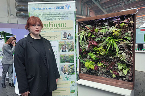 Своей живостью и зеленью притягивал посетителей проект второкурсницы Минского государственного колледжа ремесленничества и дизайна имени Н. А. Кедышко Дарьи Барковской "FloraForum". Девушка предложила свой формат вертикального сада, который будет создаваться на основе определенных критериев разработанной программой. "Он нужен для озеленения нашего прекрасного города. Его можно использовать и для озеленения комнаты, дачи, сада. Проект представляет собой программу, где регулируется все - от количества растений до их цвета, размера. Программа подбирает максимально хорошее сочетание цветов, их расположение, систему полива, свет и так далее", - рассказала девушка.