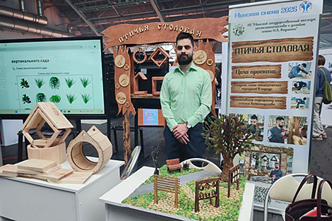 Мастер производственного обучения Минского государственного колледжа ремесленничества и дизайна имени Н. А. Кедышко Артем Григору представил проект "Птичья столовая". "Это экологические деревянные кормушки для птиц. Надеемся, что это поможет нам вернуть птиц в города, - пояснил автор проекта. - Планируем устанавливать их в жилых дворах, парках, скверах. Желающие увидят их и смогут присоединиться к инициативе - кормлению пернатых".