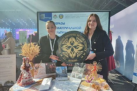 Интересным многим показался совместный проект учителя русского языка и литературы Ксении Бараули и учителя искусства Яны Коноплевой, которые представляют гимназию №25 Минска. Девушки озаботились сохранностью объектов нематериального культурного наследия Беларуси. "Это обряд "Колядные цари", Будславский фест в честь почитания иконы Матери Божьей Будцовской, "Юрьевский хоровод", культура лесного борничества и соломоплетение. Ну и самый молодой, добавленный в 2024 году, - вытинанка. Цель нашего проекта - объединить и визуально обозначить все эти шесть нематериальных культурных ценностей Беларуси в материальных конкретных вещах", - пояснила Ксения Барауля.