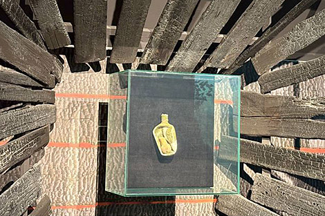 "Это страшное эхо 1941 года. Предмет был найден в 1992 году в западной части Беларуси. Летом 1941 года наши войска, 10-я армия Западного фронта, попала в окружение в том месте, где был найден этот предмет. Что там происходило, мы можем представить, глядя на экспонат, - отметила специалист музея. - Обязательно посмотрите, как оформили этот экспонат художники. Вокруг опаленные доски как символ взрыва, разрушенных городов и сел. На заднем плане - фотографии воинов, они также обожжены. Это лишь малая часть тех, кто сражался и погиб летом 1941 года на нашей земле".