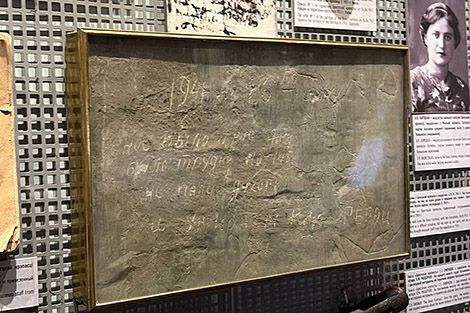 Одной из главных реликвий музея является подлинный фрагмент стены с надписью: "1941 год 26-го июня нас было трое нам было трудно но мы не пали духом и умираем как герои".
