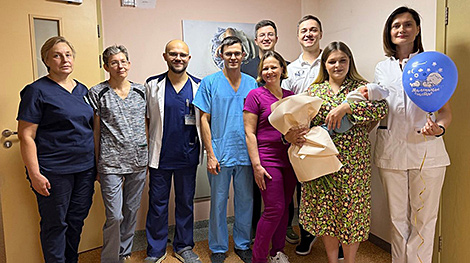 Сегодня, когда позади сложнейшая операция и успешные роды, бригада навестила пациентку перед выпиской. Встреча состоялась в стенах РНПЦ "Мать и дитя".