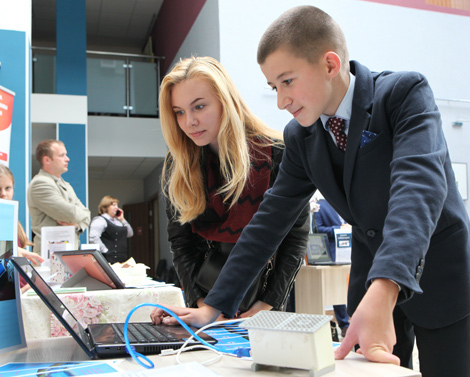 Лучшие идеи и проекты школьного бизнеса в стадии разработки и реализации были представлены и на форуме. Многие из них заключались в создании мобильных приложений в сфере туризма и образования, как, например, проект "Беларусь-365" СШ №95 или разработка интерактивного гида по парку Победы в Минске на нескольких языках - гимназии №36. Многие основывались на различных видах рукоделия: мастерские подарков, создание искусственных цветов, плетение из бисера и др. Были и авторские изобретения, уже внедренные в практику. Например, учащиеся СШ №35 им. Героя Советского Союза Д. Азизова еще три года назад создали и за это время совершенствовали автомат подачи звонков, который дешевле и функциональнее заводского аналога. Он уже используется в четырех школах Минска, включая родные пенаты разработчиков. А шестиклассник Михаил Жирко просто сразил присутствующих тем, что свой первый измеритель температуры и влажности собрал еще в третьем классе всего за 2 недели. Удобство изобретения в том, что датчик может находиться на улице, а короб с платой и LCD-экраном, на который выводятся показания, - перед пользователем в помещении.