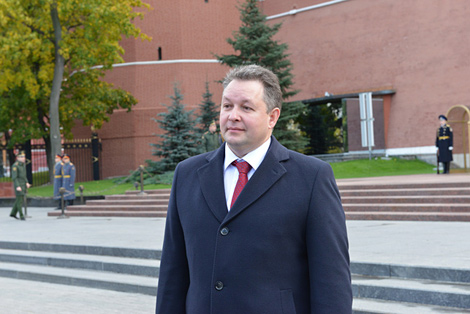 10 октября, Москва /Эдуард Пивовар - БЕЛТА/. Председатель Минского горисполкома Андрей Шорец сегодня в Москве от имени всех минчан возложил венок к Могиле Неизвестного солдата у Кремлевской стены. Эта церемония приурочена к Дням Минска в российской столице, передает корреспондент БЕЛТА.