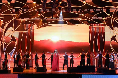 10 июля, Витебск /Ольга Богачева - БЕЛТА/. В Летнем амфитеатре в Витебске состоялся первый сольный концерт: заслуженная артистка России Зара с новой программой "Мир вашему дому" собрала полный зал, сообщает корреспондент БЕЛТА, посетившая первый концертный проект на главной сценической площадке "Славянского базара".