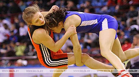 Ванесса Каладинская (Беларусь) и Элеонора Абдуполипова (Казахстан) на 40-м турнире по вольной борьбе на призы Александра Медведя, 2010 г.