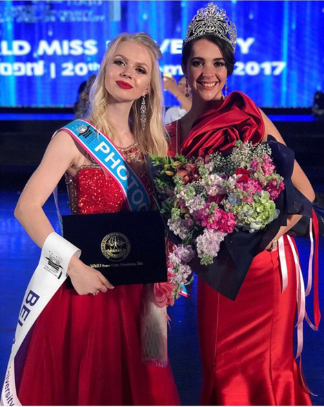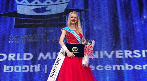 28 декабря, Минск /Корр. БЕЛТА/. Студентка факультета философии и социальных наук БГУ Каролина Черношей вошла в топ-6 на конкурсе World Miss University и победила в специальной номинации Miss Photogenic. Об этом корреспонденту БЕЛТА сообщила сама конкурсантка.