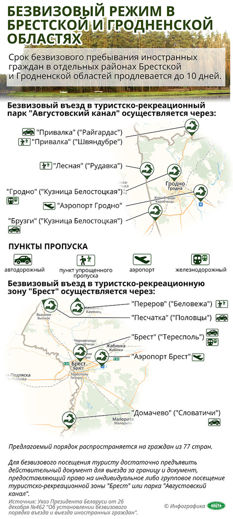Председатель правления РСТИ также подчеркнул, что 10-дневное безвизовое пребывание иностранцев предусмотрено в первую очередь для туристов - людей, которые приобрели туристический пакет, куда входят экскурсии, посещения замков, музеев, отдых на агроусадьбах и т.д. "Это, с одной стороны, карт-бланш для регионального развития, с другой - ответственность. За документами должны стоять настоящие туристические услуги", - сказал он.