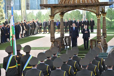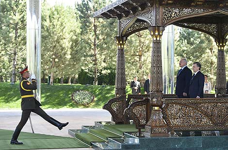 Во второй день визита в Узбекистан Александр Лукашенко проводит переговоры с главой государства Шавкатом Мирзиеевым. По традиции им предшествуют протокольные мероприятия.