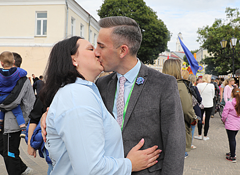 15 июля, Витебск /Андрей Щербицкий - БЕЛТА/. Очередной рекорд установили на "Славянском базаре в Витебске" во время феста уличного искусства "На семи ветрах". На Пушкинском мосту собрали тысячу поцелуев в соцсетях, сообщает БЕЛТА.